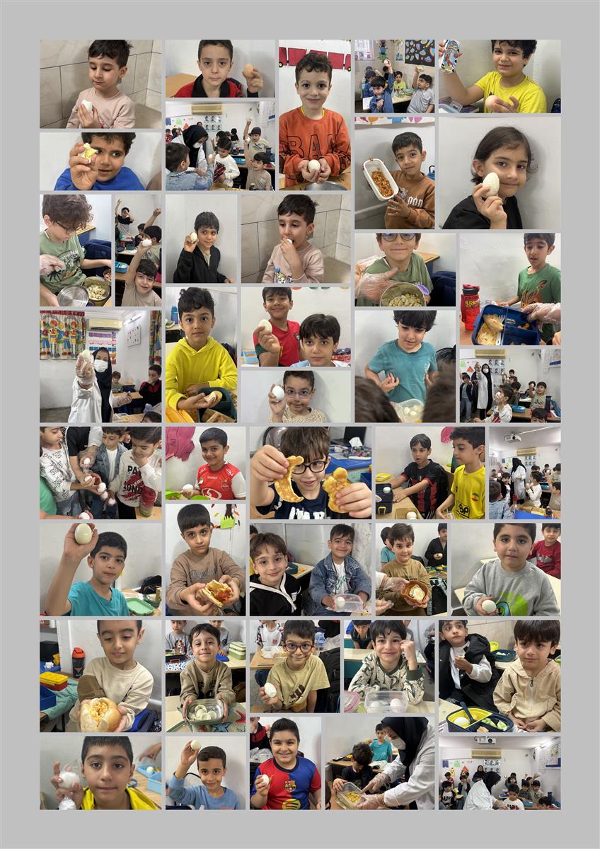 هفدهم مهرماه روز جهانی تخم مرغ بود ولی چون مصادف شد با روز پنجشنبه برای همین، شنبه رو برای معرفی خواص مفید این ماده غذایی مهم انتخاب کردیم و مدرسهمون بوی تخممرغ گرفته بود! از آبپز گرفته تا نیمرو، از املت تا پنکیک! و هرکدوم از بچه ها یه تفسیر خاص از «روز تخممرغ» داشتن یکی گفت: خانم من املت آوردم، چون توش تخممرغه!دیگری گفت: من پنکیک دارم… چون یهجورایی اونم تخممرغیه! خلاصه اینکه روز تخم مرغ هم اینجوری و با صحبت های خوب خانم کریمی سپری شد .